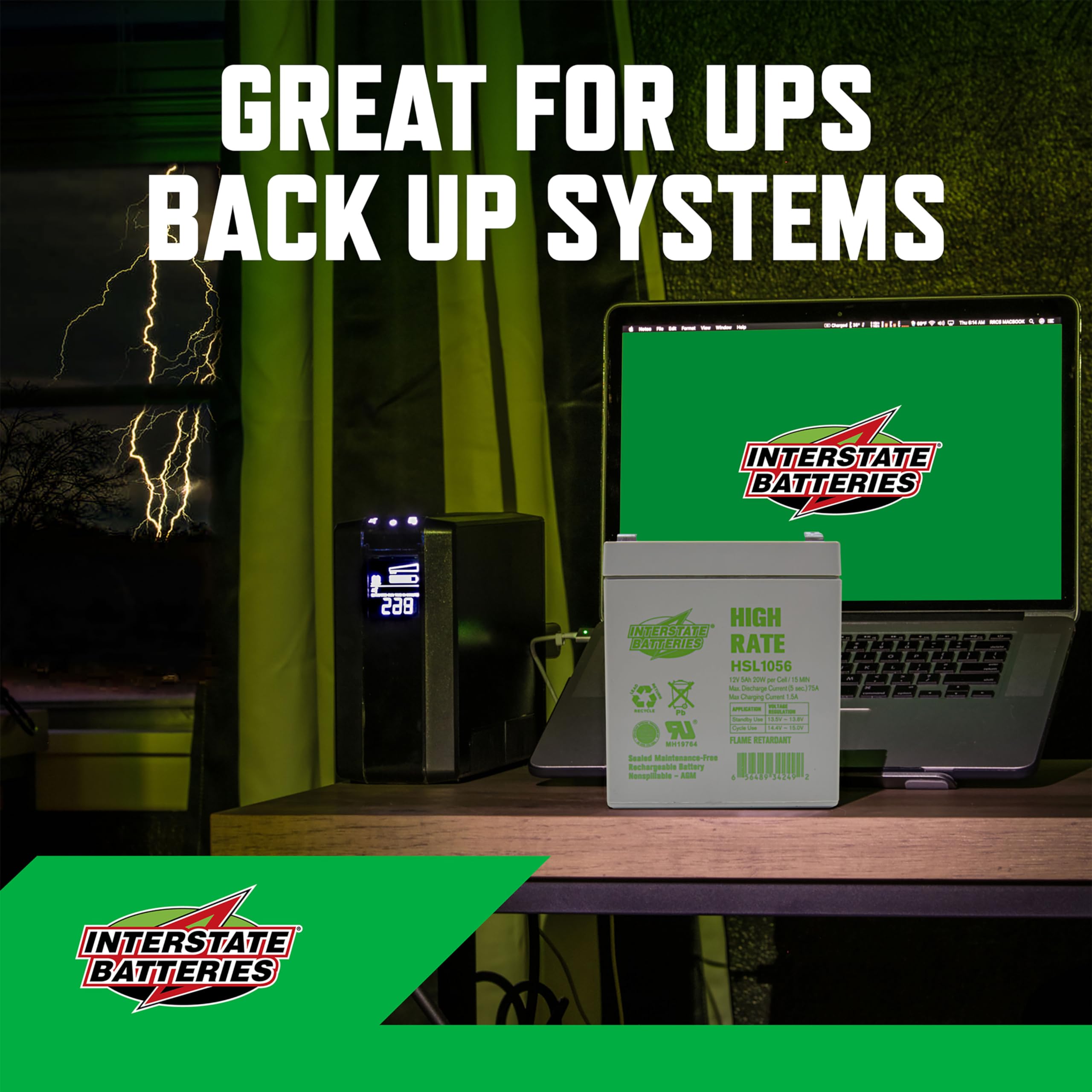 Interstate Batteries 12V 5Ah High Rate Battery (F2 Terminal) SLA AGM VRLA Fireproof Rechargeable Replacement for UPS Systems, Servers, Backup Power (HSL1056)