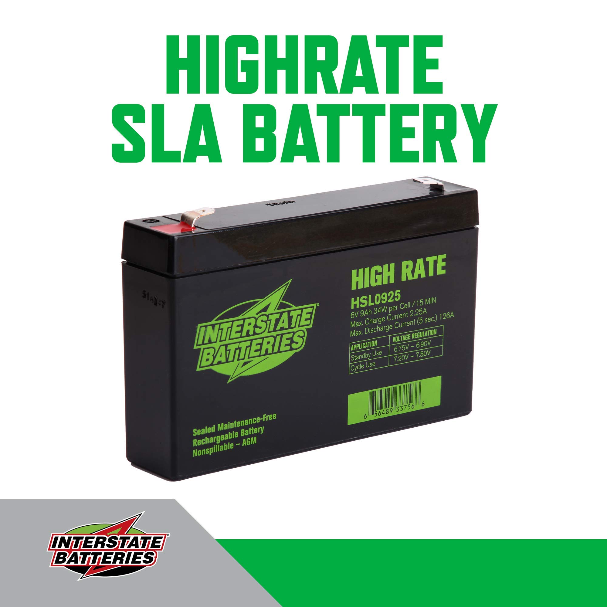 Interstate Batteries 6V 9Ah High Rate Battery (F2 Terminal) SLA AGM VRLA Rechargeable Replacement for UPS Backup Power, Cranking Systems, Lighting (HSL0925)